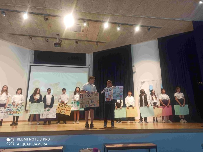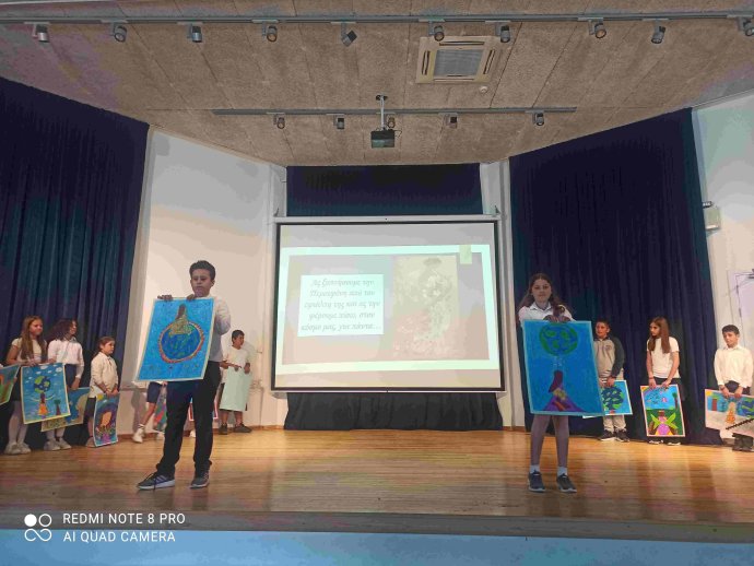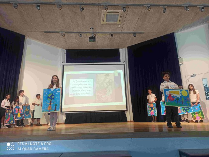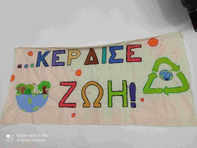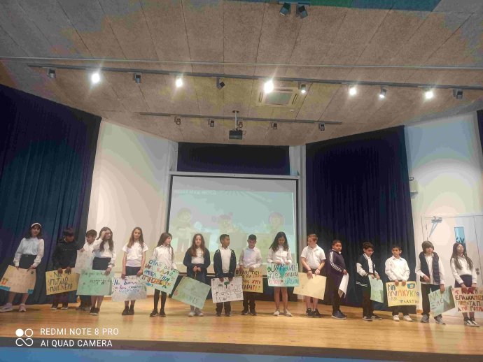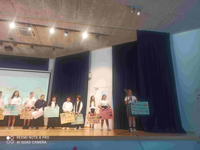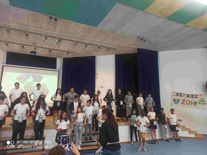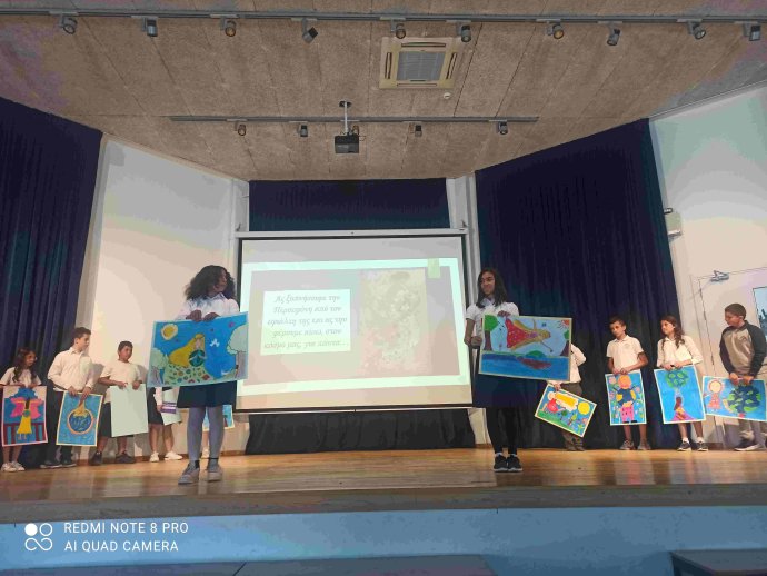 ΠΕΡΙΒΑΛΛΟΝΤΙΚΗ ΕΚΔΗΛΩΣΗ με καλλιτεχνικό πρόγραμμα από μαθητές/τριες του σχολείου και έκθεση εργασιών/κατασκευών με θέμα το περιβάλλον και την ανακύκλωση, που αποτελεί περιβαλλοντικό στόχο του σχολείου